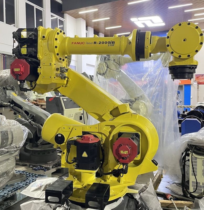 This one is an improved R2000iB electromechanical arm coupled with the state of the art R-30iA Fanuc controller. This 210 kg and 2650 mm horizontal arm reach robot is a faster and lighter one than its predecessor. Suitable for general handling of heavy payloads, palletizing, welding, plasma cutting, milling, etc...